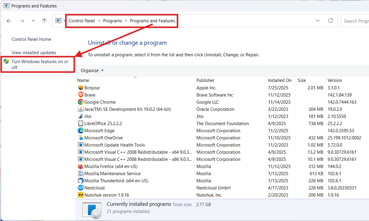 In the Turn Windows features on or off dialog box, enable “Internet Information Server”