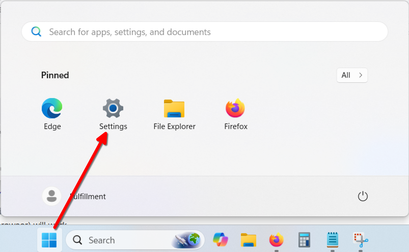 Go to your Start menu and select Settings: